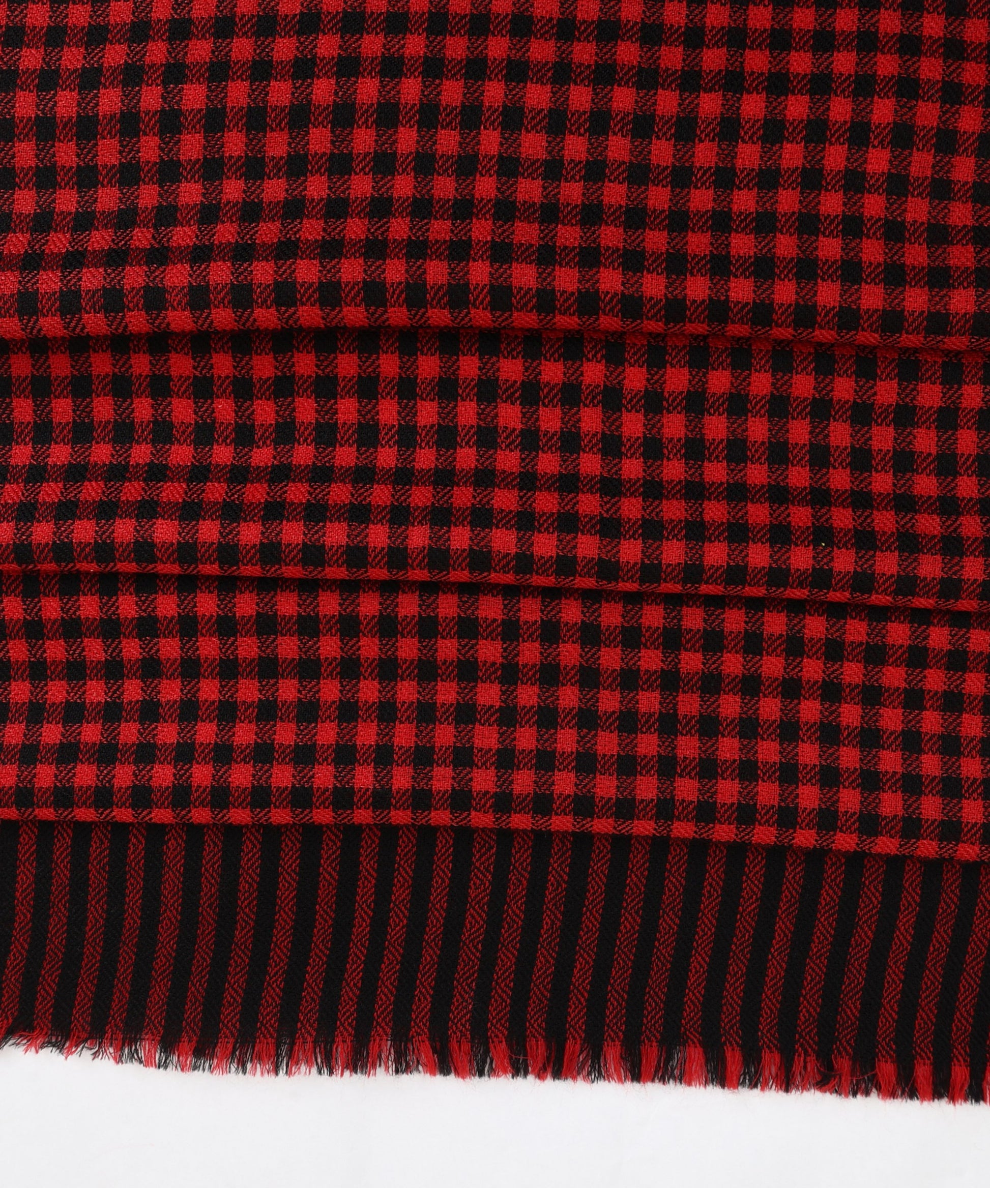 Make a bold statement with this stylish handcrafted scarf, woven from a luxurious blend of 85% fine wool and 15% fine silk. Designed with a classic check pattern in rich red and black tones, it brings a touch of sophistication and warmth to any wardrobe.