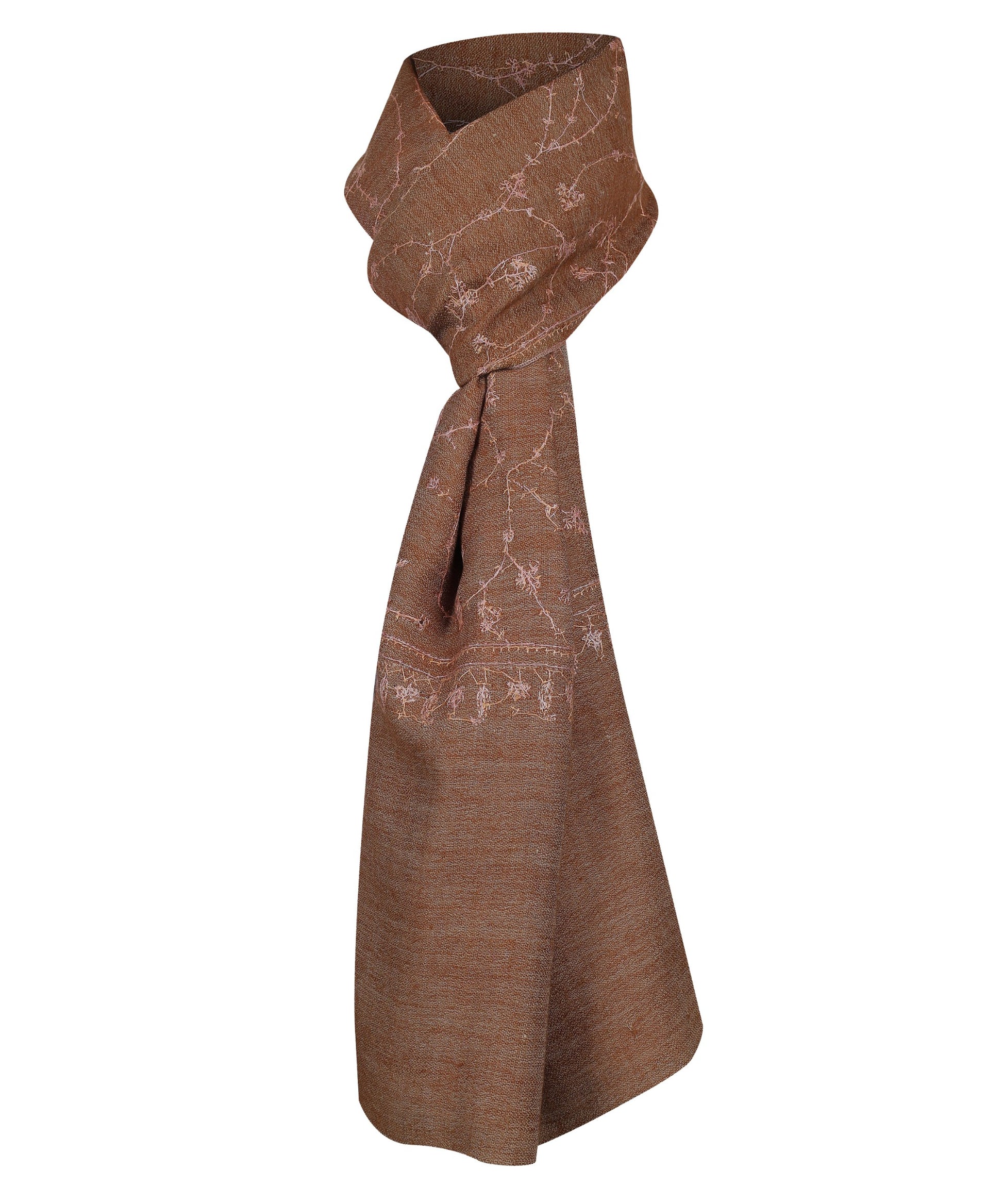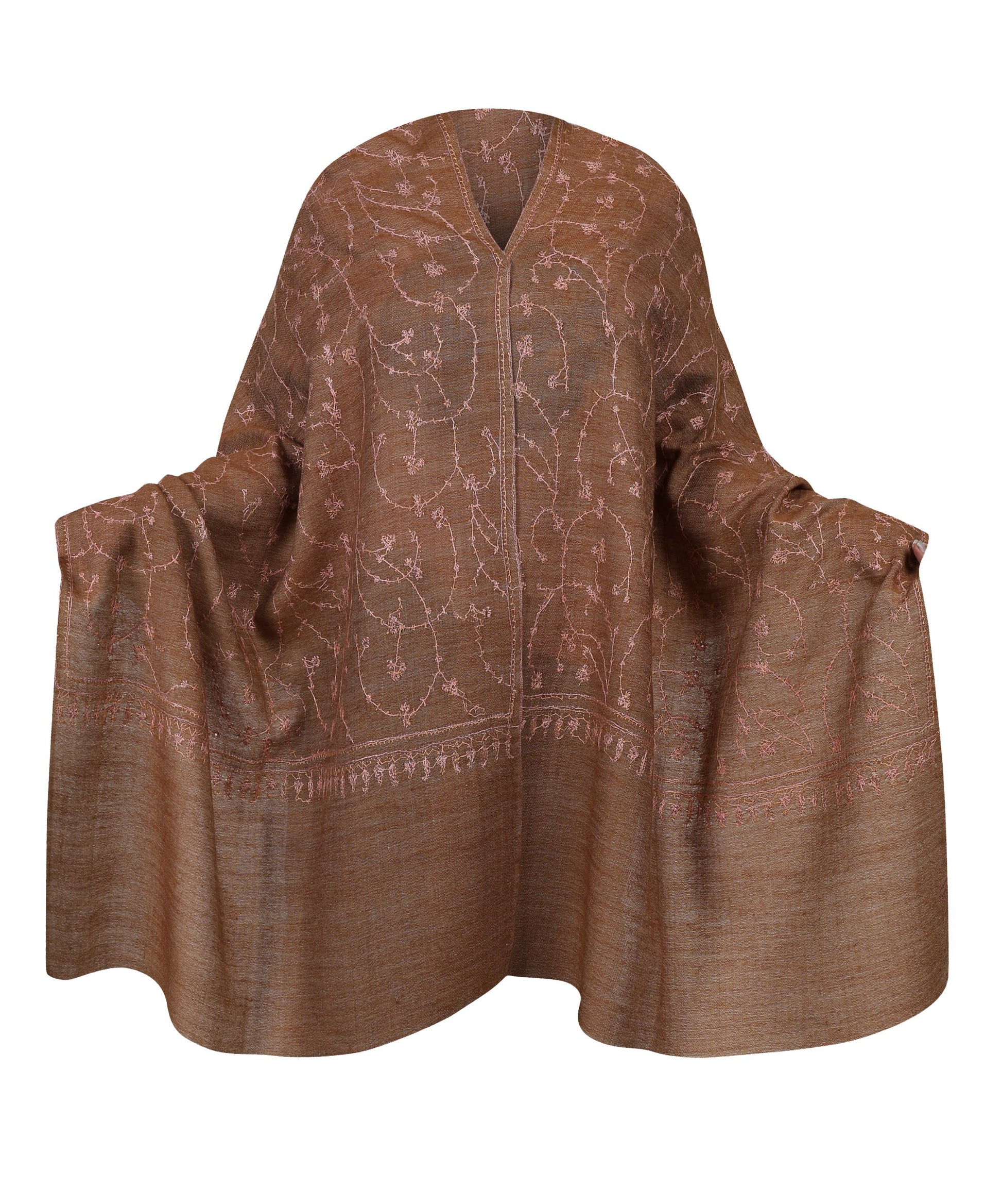 Werten Sie Ihren Look mit diesem luxuriösen handgewebten Kaschmirschal auf, der meisterhaft von erfahrenen Kunsthandwerkern in Kaschmir, Indien . Mit aufwendigen Kunstwerken in einem tiefen Braunton, dieses exklusive Stück vereint Wärme, Weichheit und raffinierte Eleganz .