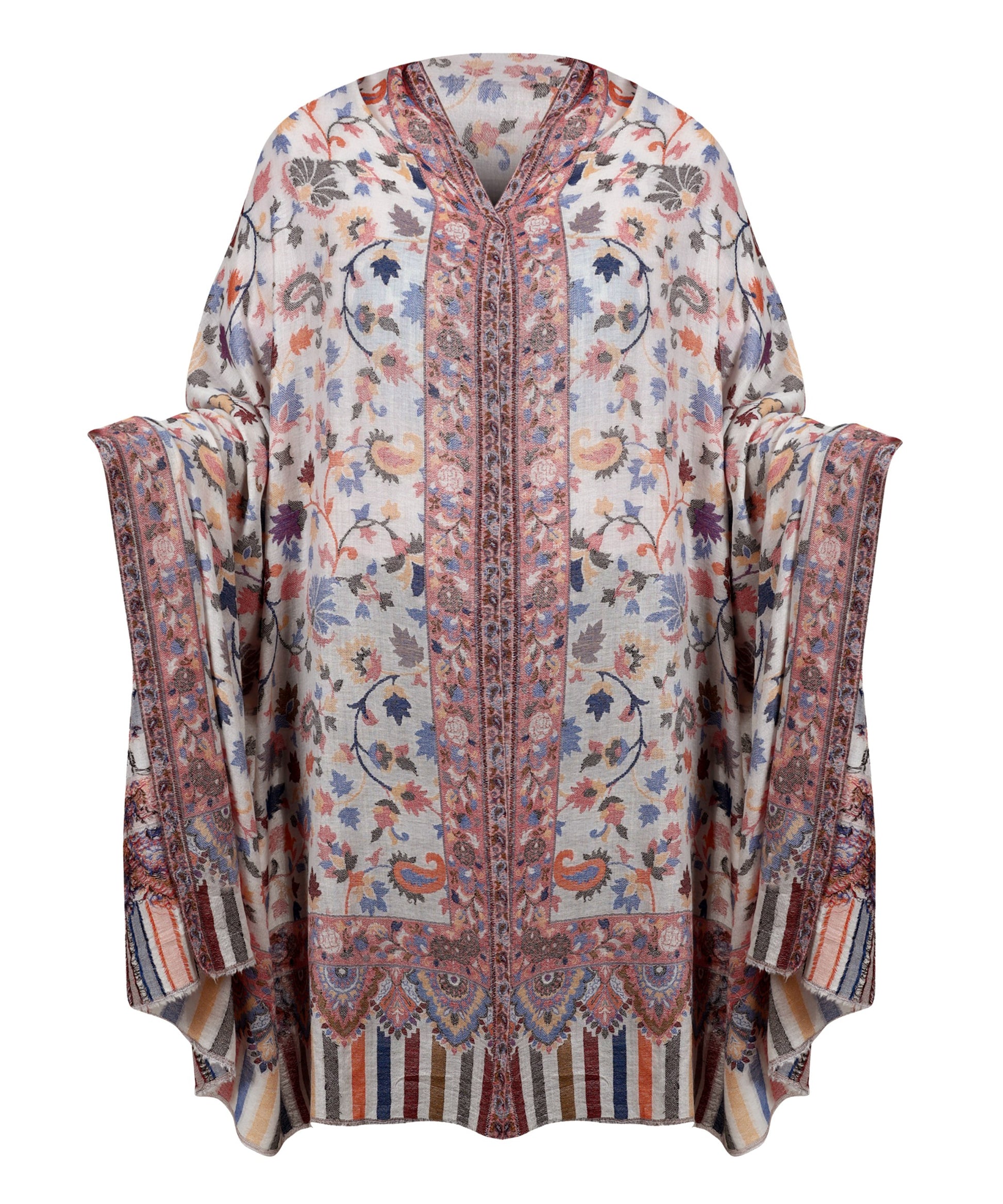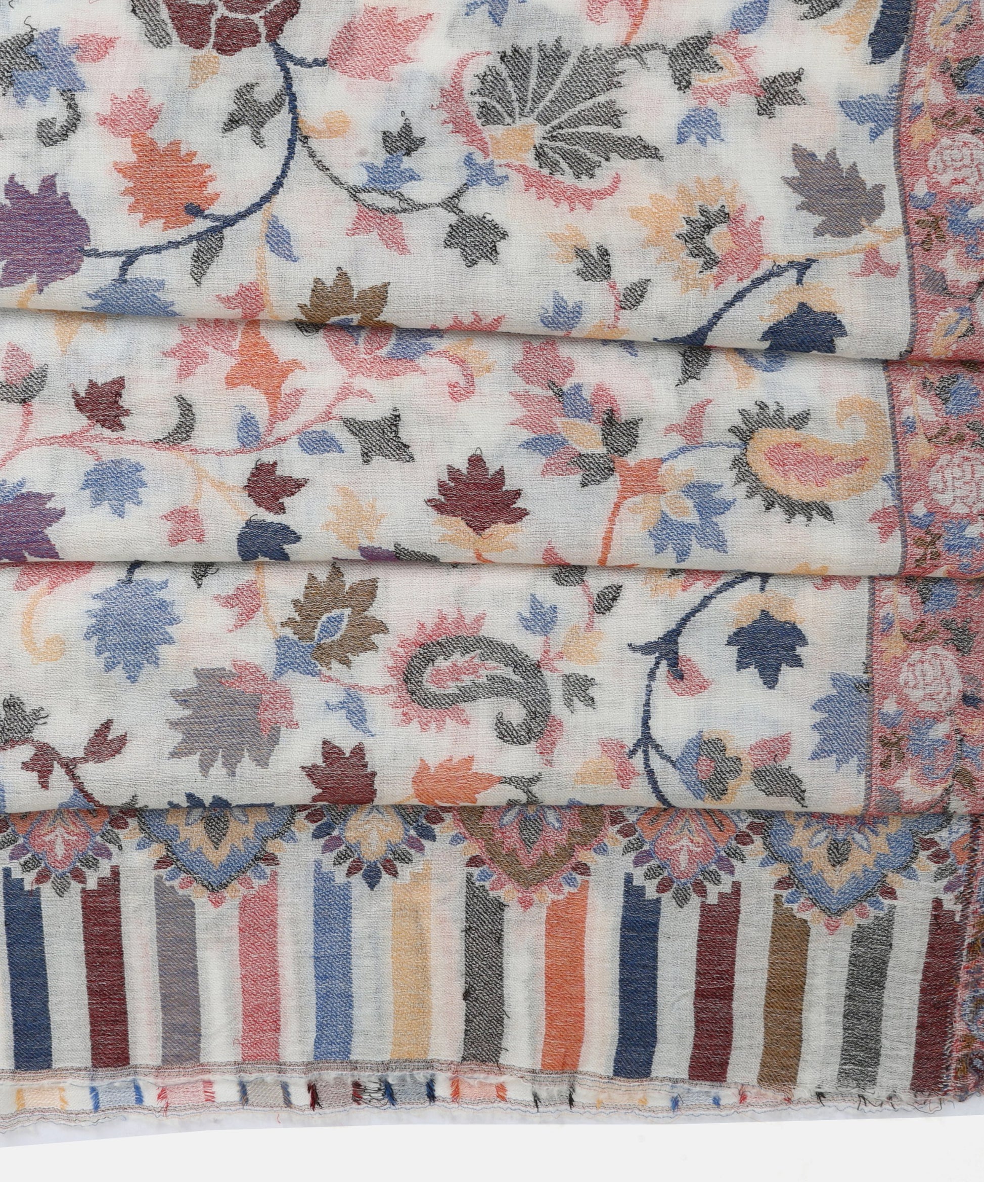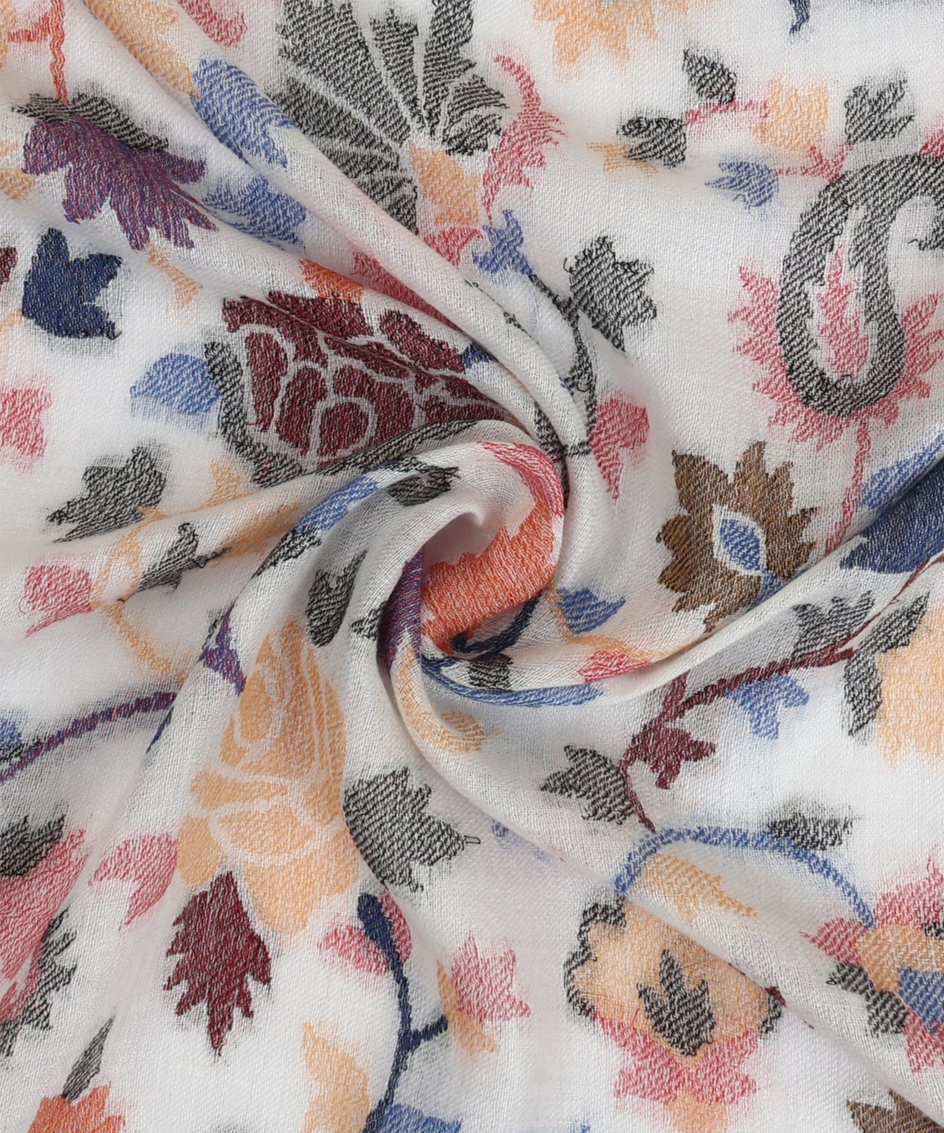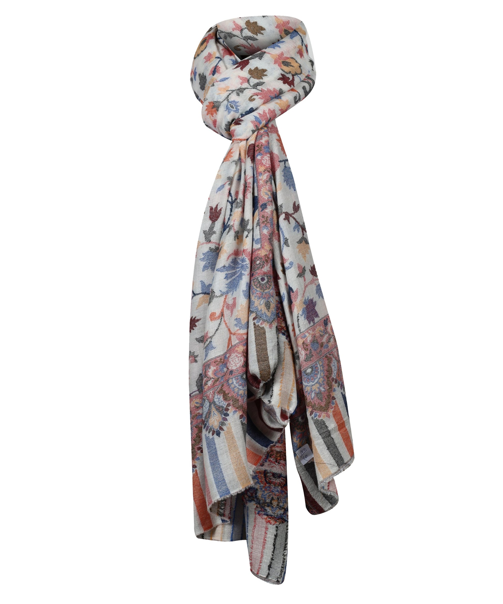 Handgewebter Wollschal – Mehrfarbiger Blumendruck aus Kaschmir