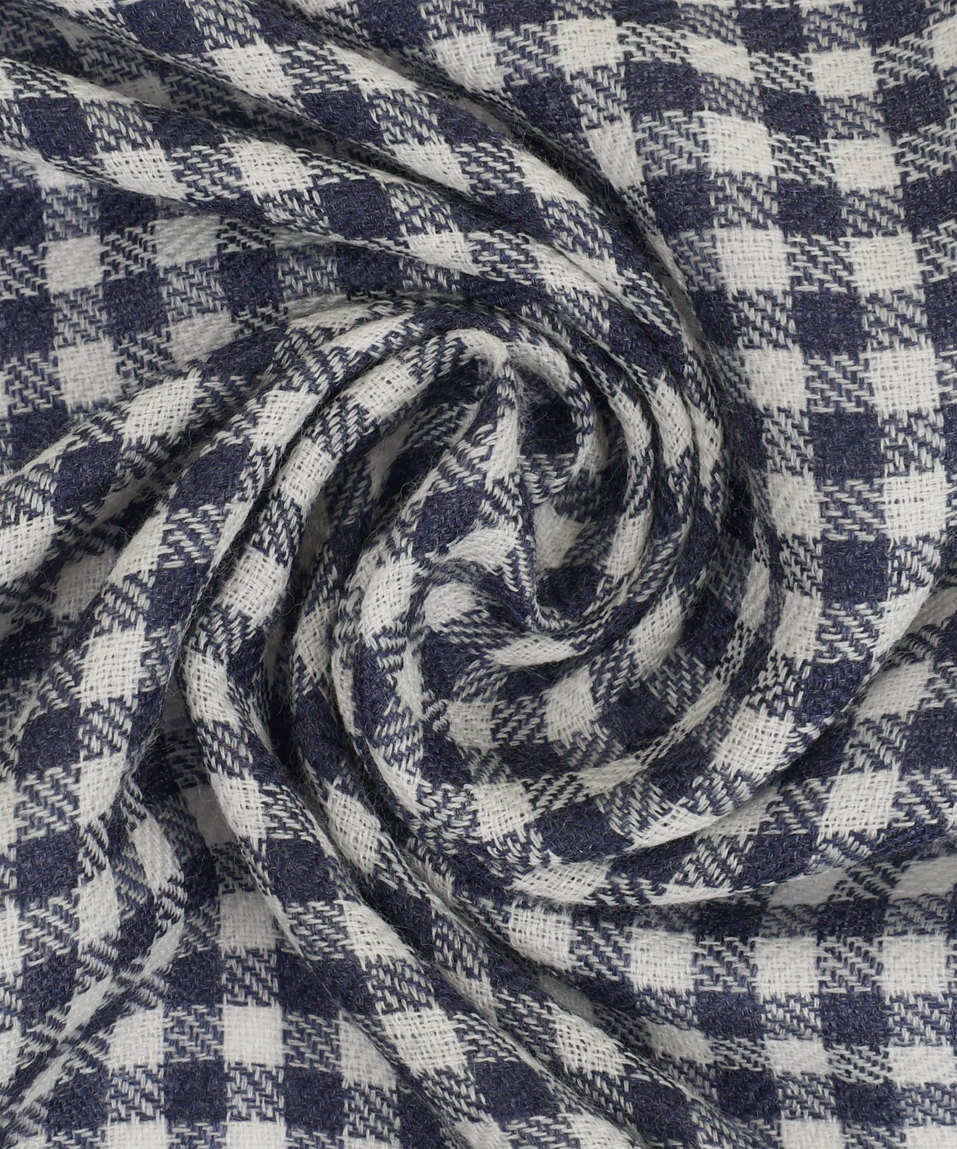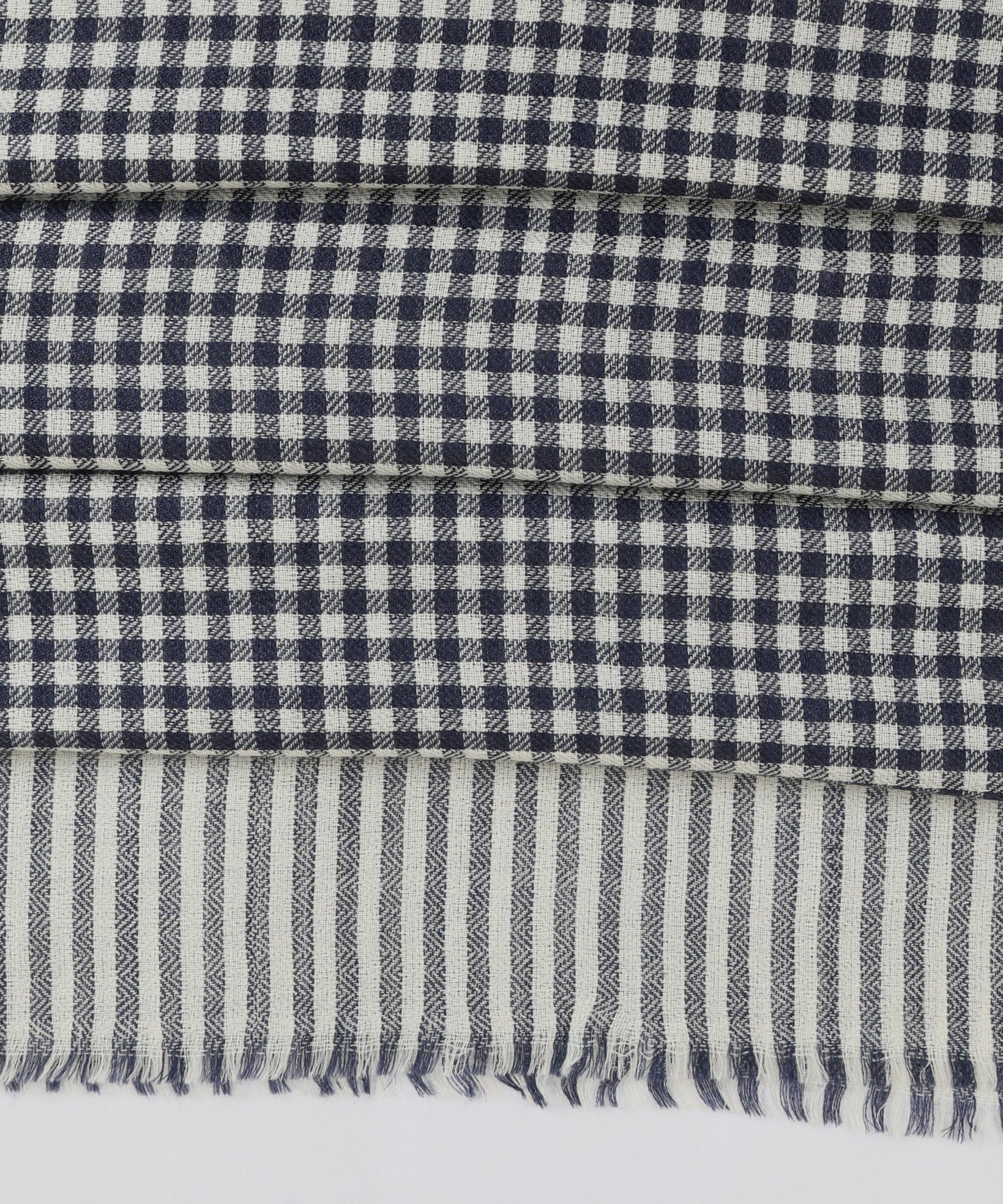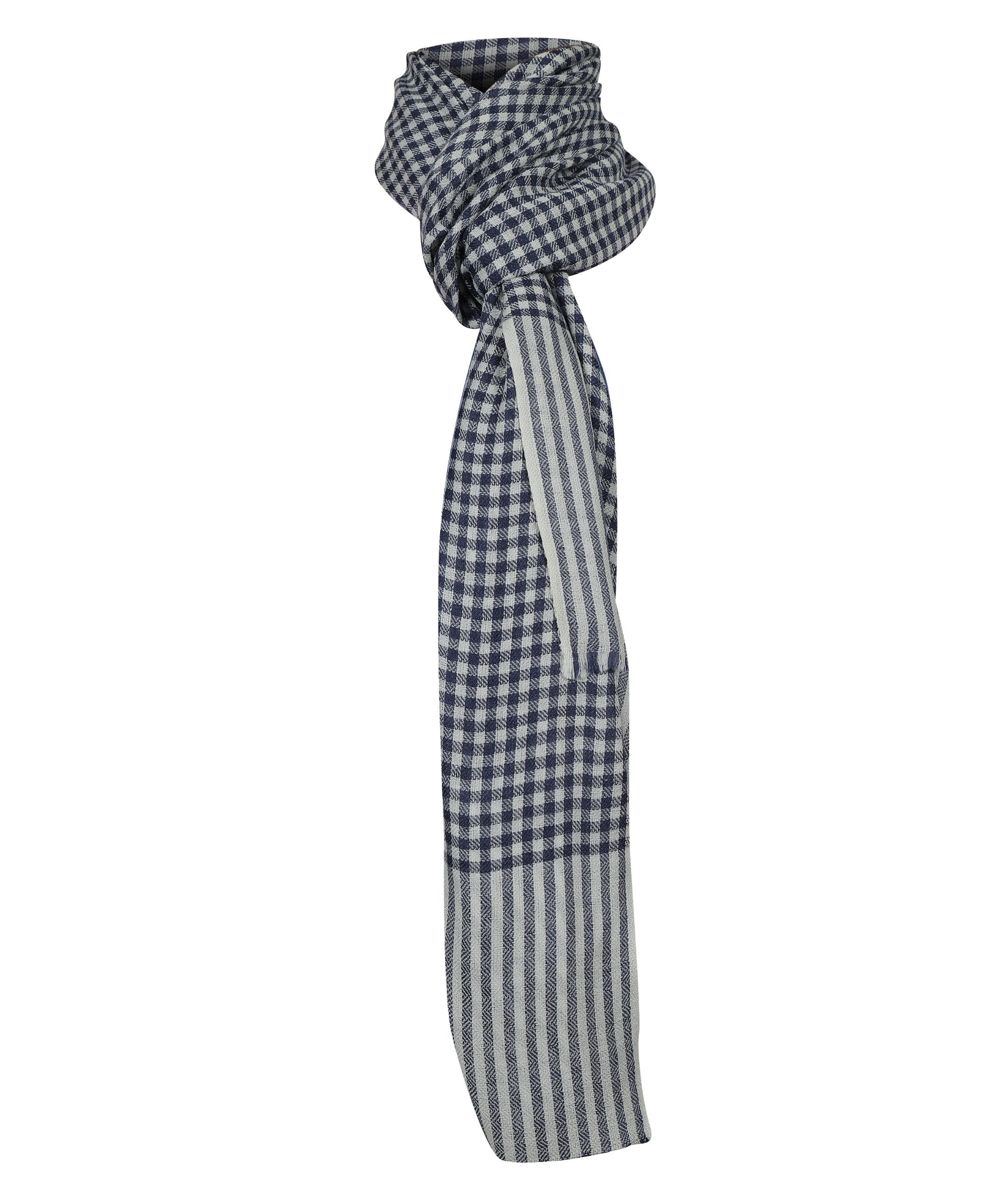 Woll-Seiden-Schal – Marineblau-Weiß kariert, zeitloser handgefertigter Stil