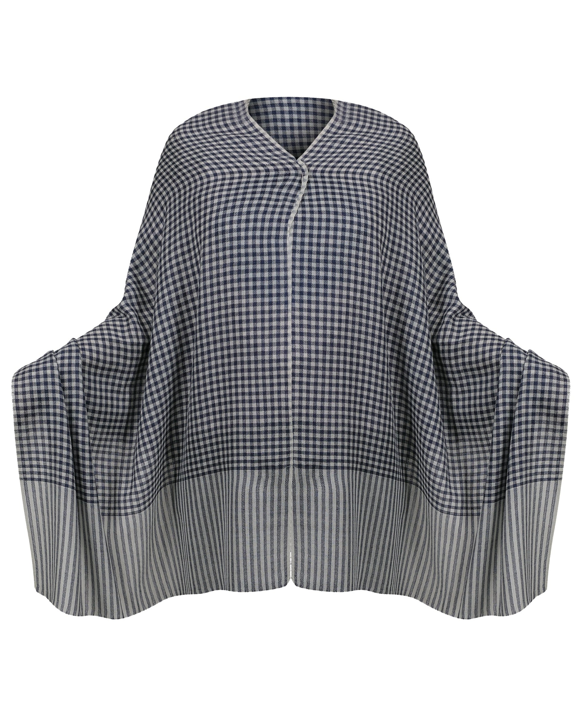 Hüllen Sie sich in Eleganz mit diesem luxuriösen handgefertigten Schal , hergestellt aus einer raffinierten Mischung aus 85 % feine Wolle und 15 % feine Seide . Mit einem klassischen marineblau-weißen Karomuster . Dieses Stück verbindet zeitlosen Stil mit moderner Vielseitigkeit.